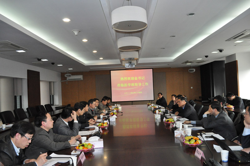 3月24日下午,校党委书记金德水赴医学部调研,听取医学部及下属各院系、附属医院的情况汇报和意见建议。党办校办副主任张丽娜陪同调研。