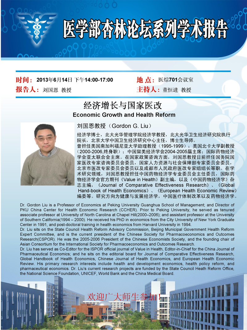 杏林论坛系列学术报告第二十四场——刘国恩教授学术报告