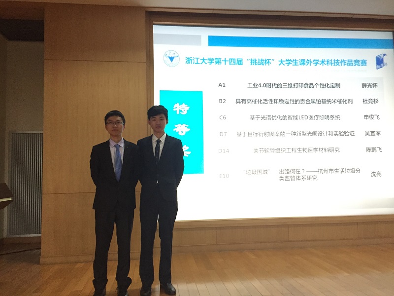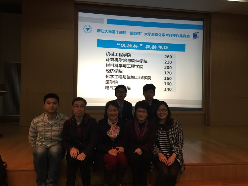 2015年3月27日,浙江大学第十四届“挑战杯”大学生课外学术科技作品竞赛决赛在紫金港校区国会225举行。本届挑战杯于2014年10月正式启动,受到全校师生的广泛关注。经过院级选拔、学科类别复赛等环节,共有八十余项作品晋级决赛,医学院基础医学系欧阳宏伟教授指导的学生2010级七年制陈鹏飞作品、王青青教授指导的学生2012级五年制葛起伟作品及转化医学研究院王本副教授指导的学生2009级八年制赵斌杰成功晋级决赛。其中,陈鹏飞同学作品最终晋级为十一强作品进入当晚的公开答辩。