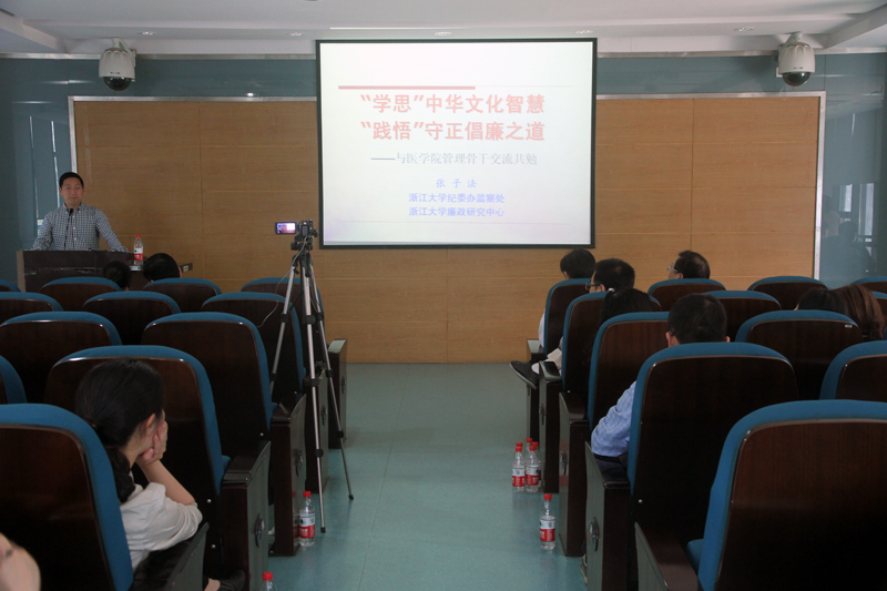 为深入贯彻在全体党员中开展“两学一做”学习教育方案,推动全面从严治党向基层延伸。2016512下午应学院党委邀请,学校纪委副书记、纪委办副主任张子法为学院党委中心组成员暨全体管理干部做了题为《“学思”中华智慧、“践悟”守正倡廉之道》的专题辅导报告,学院党委中心组成员及全体管理干部80余人参会。会议由学院党委副书记陈国忠主持。