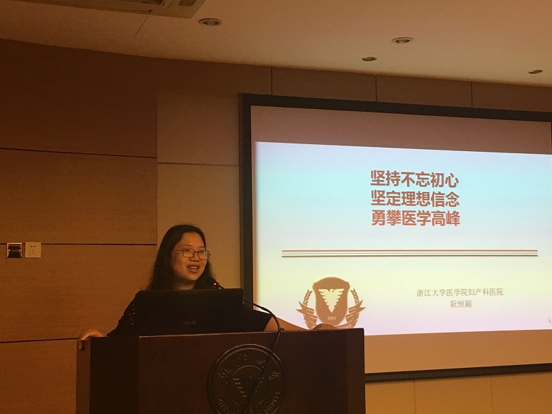 阮老师的分享题目为“坚持不忘初心,坚定理想信念,勇攀医学高峰”。她提到学习医学并坚持行医并不容易,但作为医生的成就感却是在其它职业中难以体会到的。高强度的工作让人紧张、疲倦,但是迎接新生命来到这个世界带给阮老师和她的同事们无尽的喜悦。