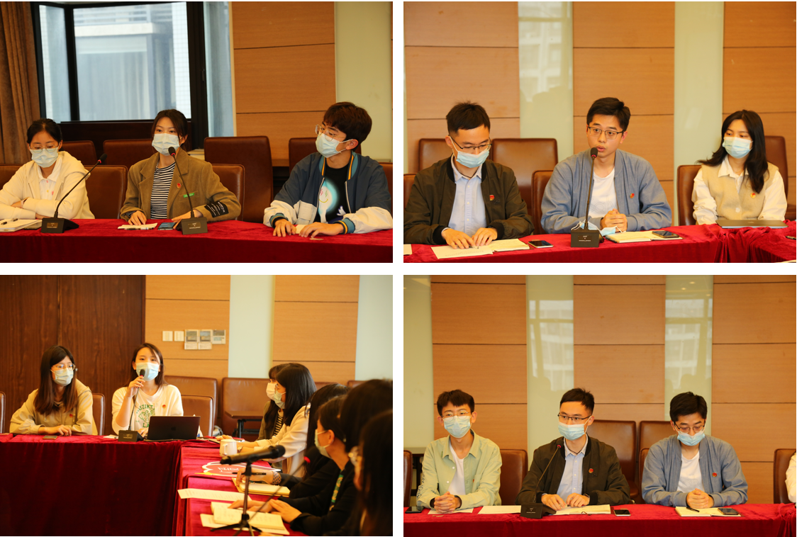 接着,四位浙大医学院的青年代表发言。社会医学与卫生事业管理2019级硕士蒋天禹同学说青年人要学干结合,从实践中汲取经验、收获历练,坚定为人民服务的理想信念,以实际行动回应习近平总书记对我们这代青年人的殷切期望。妇产科学20级博士陈盼盼同学表示中国青年的奋斗目标和前行方向归结到一点,就是坚定不移听党话、跟党走,争做堪当民族复兴重任的时代新人,自己作为“新时代医学青年,应以‘党旗红’为主色,将个人发展融入党和国家发展,彰显青春担当,不负初心和使命。外科学17级博士周丽倩同学说作为浙大医学团员青年,要做为人民服务的坚定信仰者、积极传播者、模范践行者。坚持向英雄学习、向前辈学习、向榜样学习,争做堪当民族复兴重任的时代新人。社会医学与卫生事业管理2019级硕士陈浩说红色基因是每一位当代中国青年的宝贵精神财富,要从共青团的光荣历史中汲取源源不竭的精神力量,牢记总书记的教诲,立志民族复兴,不负韶华,不负时代,不负人民!